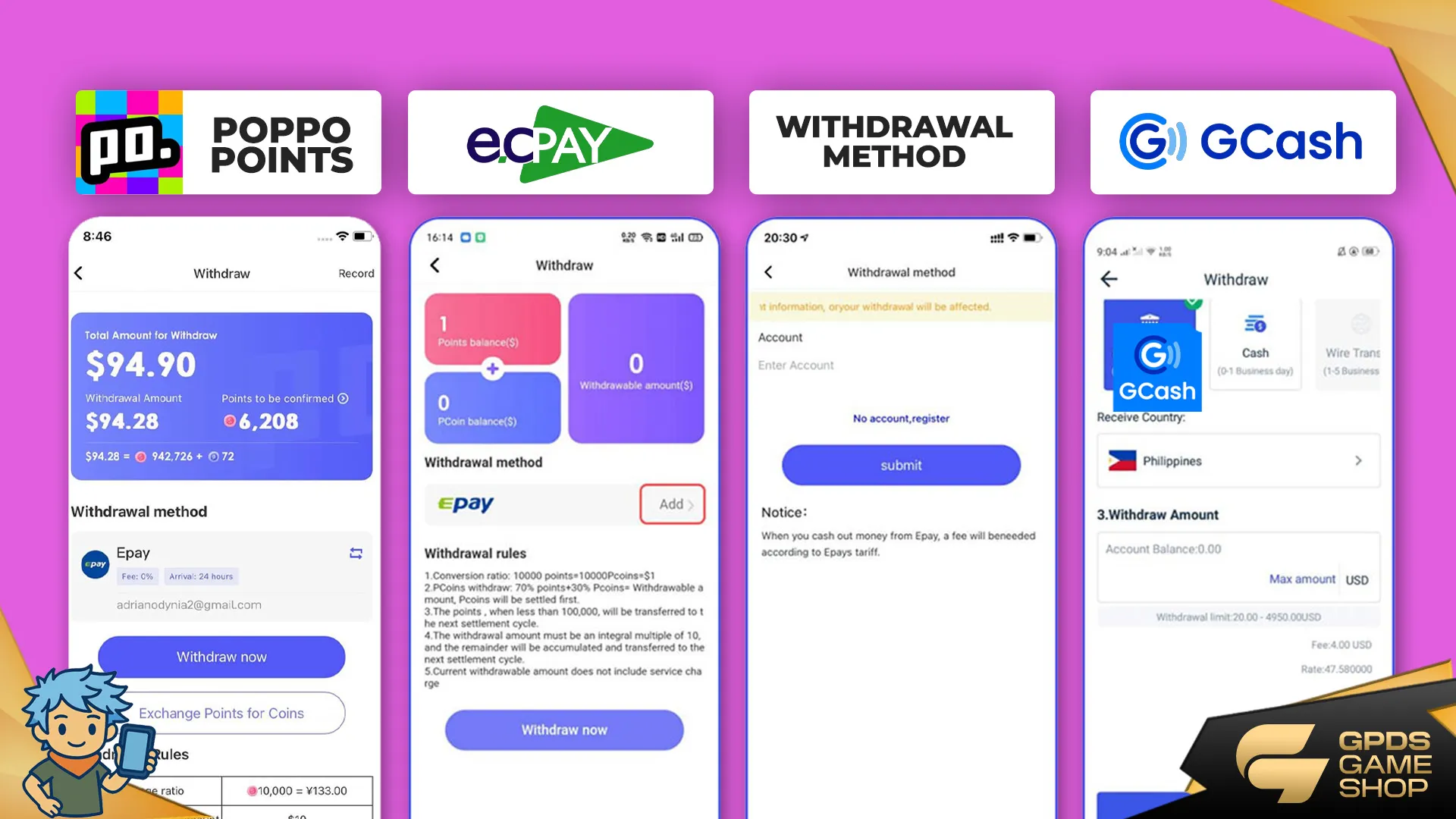 - Withdraw to Epay: Transfer your points from Poppo to your Epay wallet. This is usually instant or takes a few minutes.